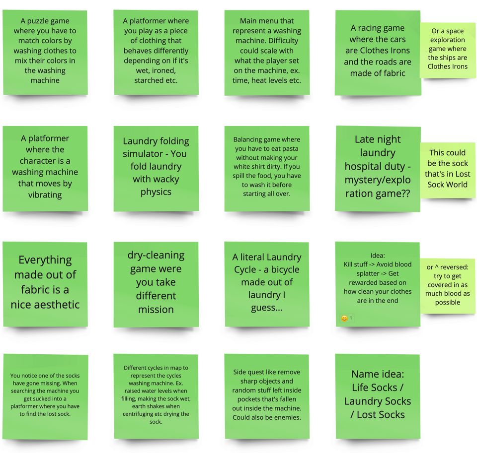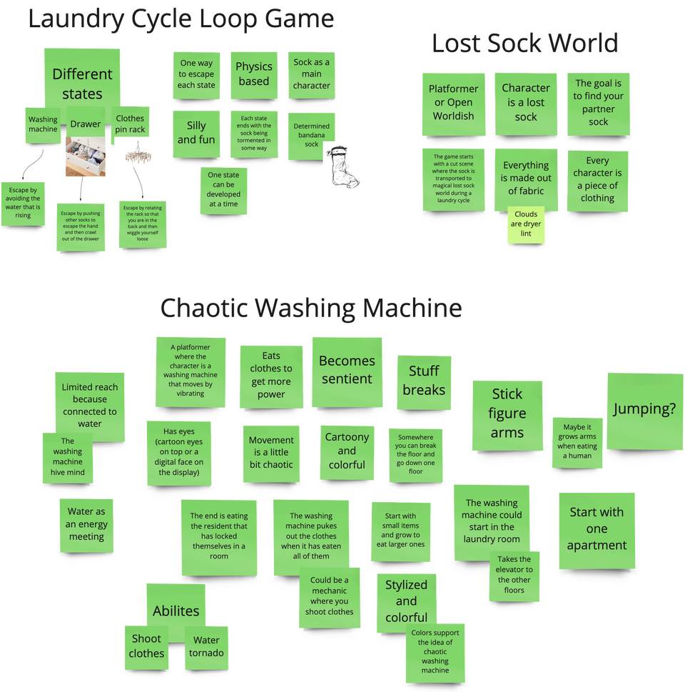 Eventually we settled on three ideas that we explored even further and tried to figure out how they would work in practice. It was pretty clear after this that everybody liked the Washing Machine idea, so we went with that.