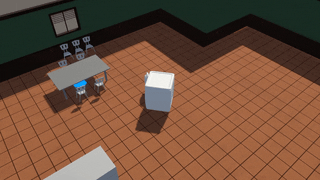 Because of the short timeframe for the project it was important to scope it properly. Many ideas came up during the first week. Some features, such as a first person view, was also implemented in early prototypes. After the alpha playtest, the designers wanted to cut the feature but others, such as the programmer who coded the feature, wanted to keep it. As this was a school project, it was important that everybody had equal say. For that reason we had a thorough discussion and eventually the others on the team understood why the designers wanted to cut the feature and agreed. The reason was that it removed the player’s connection to the character and the visual indication of making a mess in the apartment that the third person camera provided.