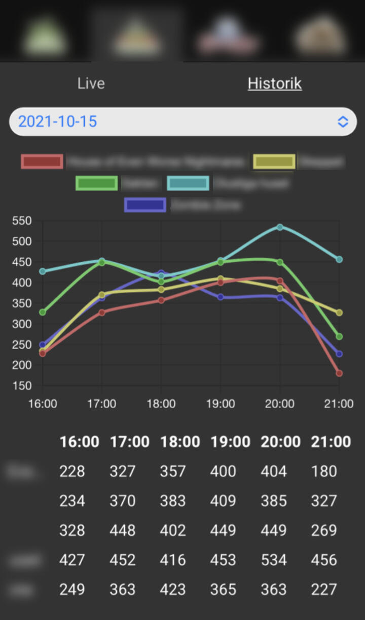 New goals for visitors per hour was set for each haunted house. These were calculated using earlier years’ data by investigating which of the haunted houses had high efficiency and identifying the reasons for this. The goals were then communicated to everybody working on the haunted houses, from management to actors.