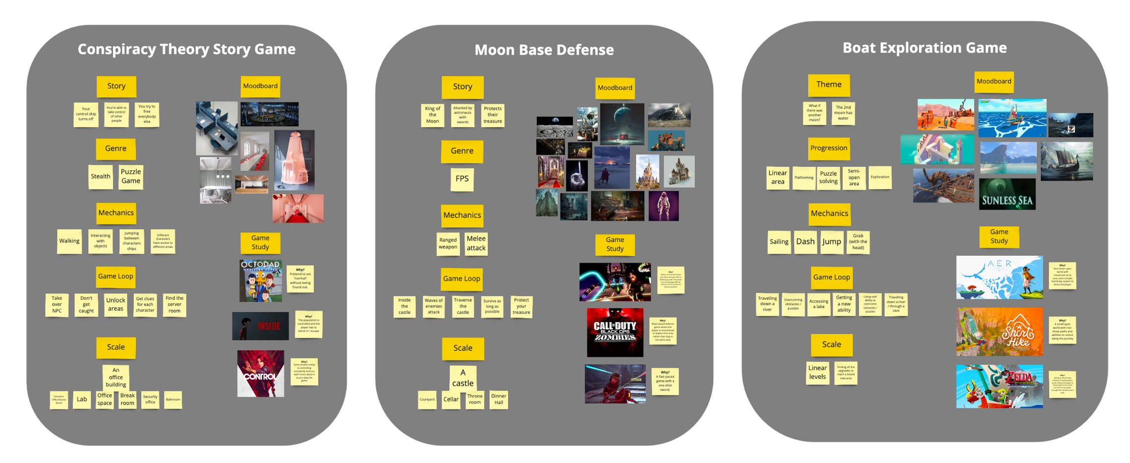 Miro was used for ideation and early planning. As soon as an idea was settled upon, we switched it for other tools.