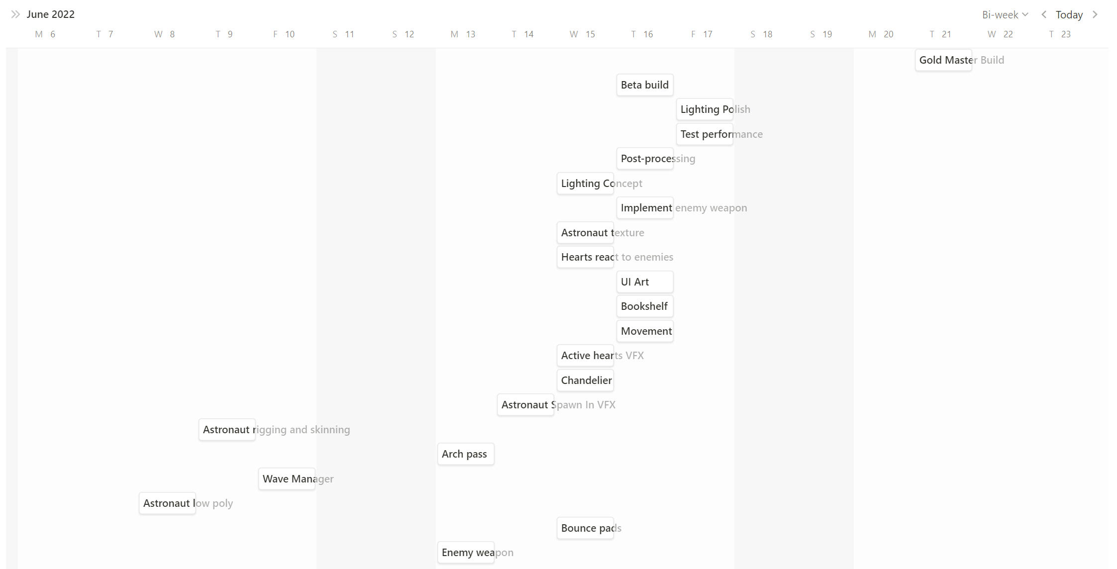 Notion was used for my personal documentation and reflections. It was also a tool to keep track of all project management tasks to make sure I could help the team in the best possible way. Lastly It was also used for the Game Design Document.